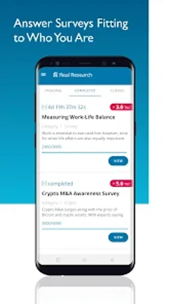 Real Research Survey App to bezpłatna aplikacja na system Android, stworzona przez Real Research dla firm i osób indywidualnych, umożliwiająca tworzenie i udział w ukierunkowanych badaniach. Oferuje niezawodne i bezpieczne środowisko do zbierania danych. Aplikacja zapewnia platformę, na której firmy i osoby prywatne mogą łatwo przeprowadzać badania, filtrować respondentów według wieku, płci, kraju i innych opcji oraz pozyskiwać dane od wykwalifikowanych respondentów.